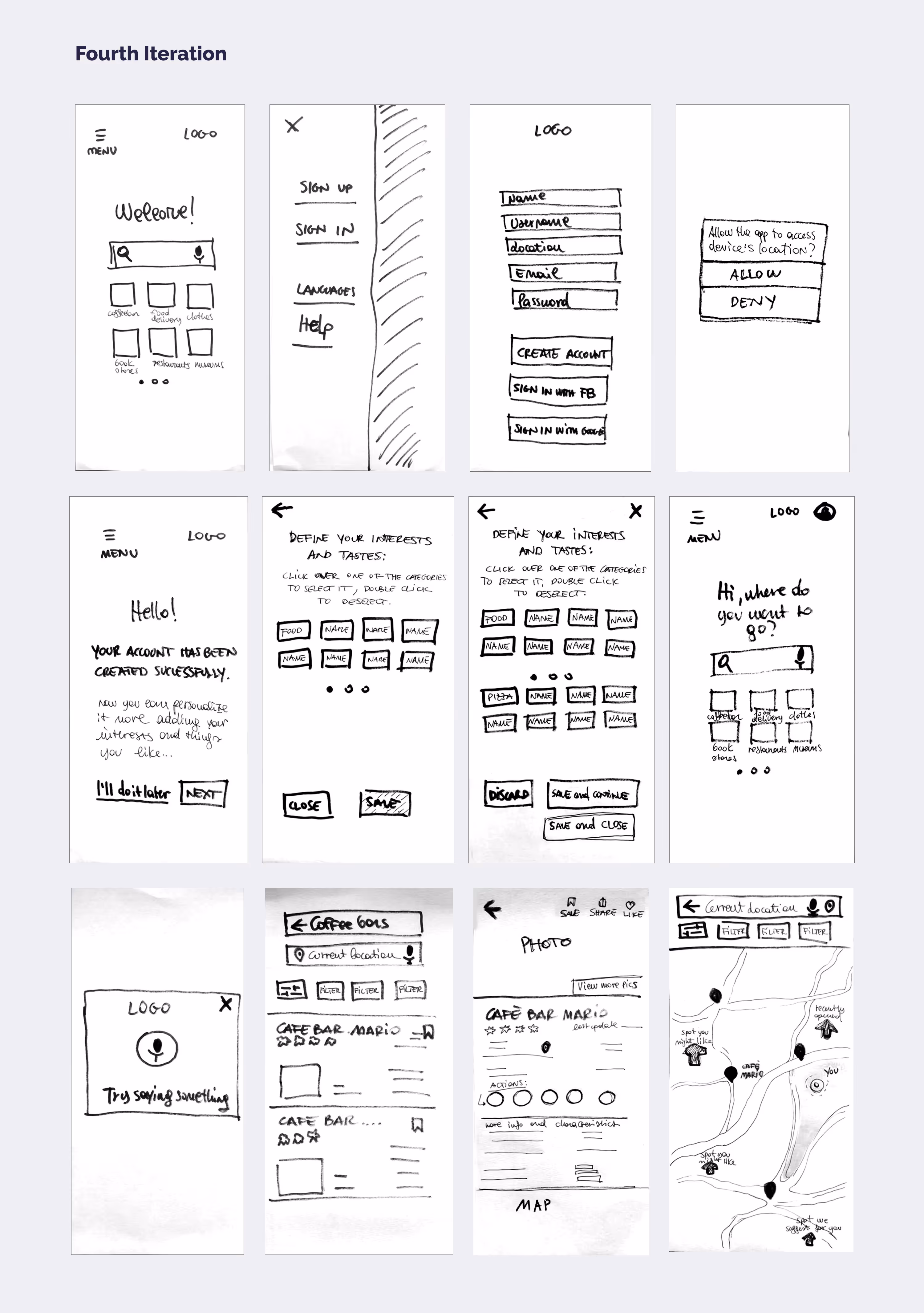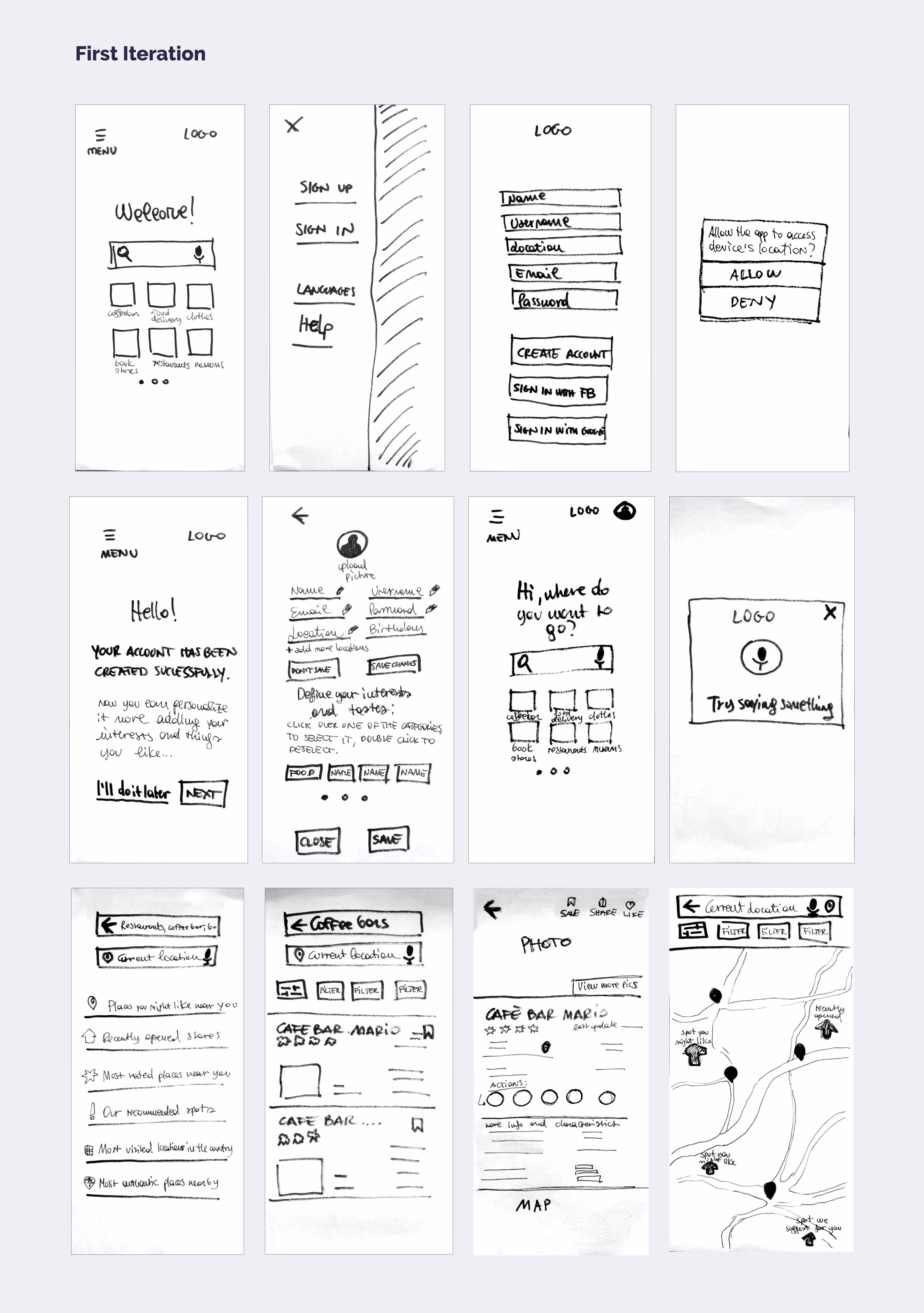Using a rapid prototyping approach, I developed these initial sketches to explore the core user flow.