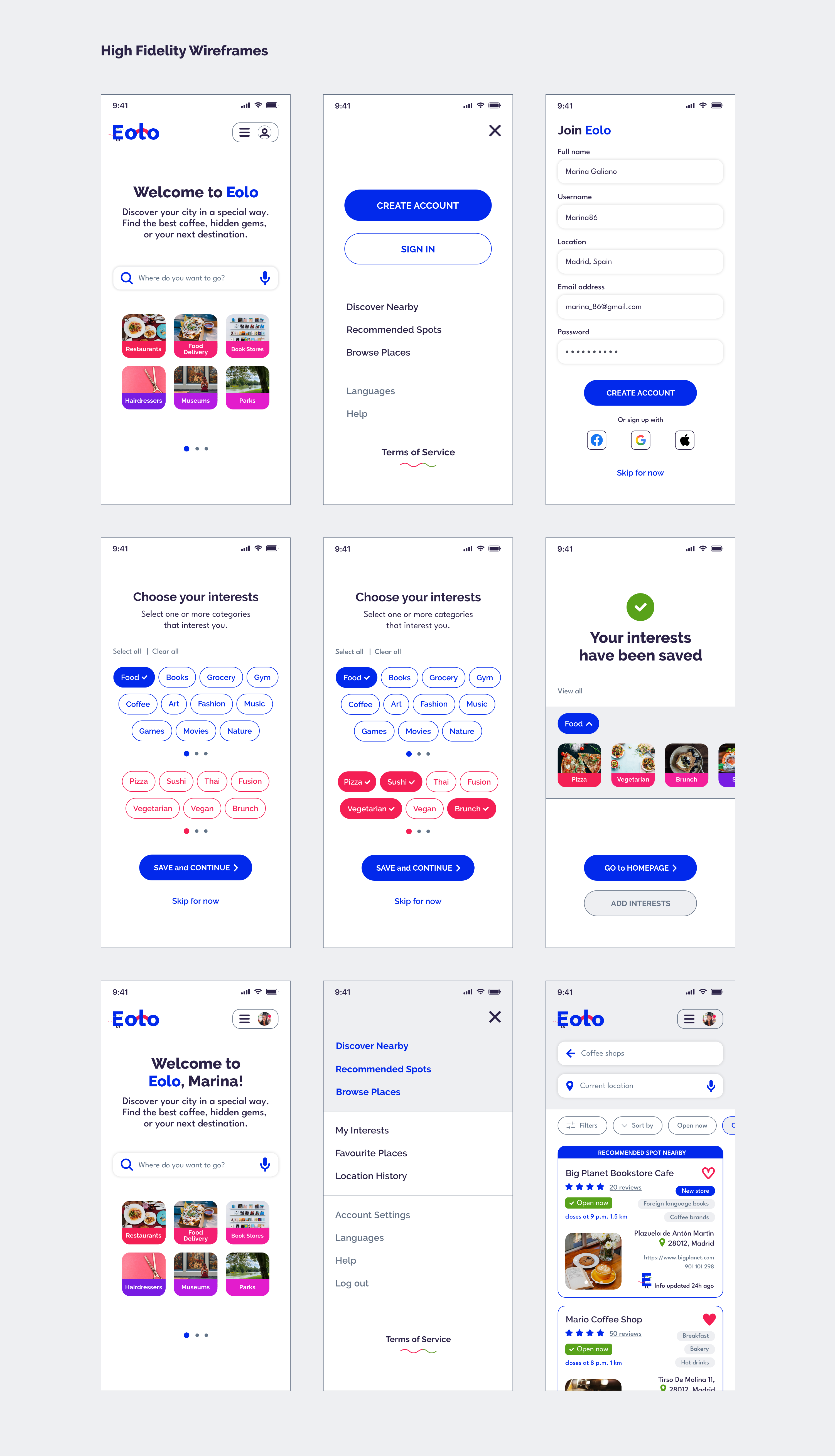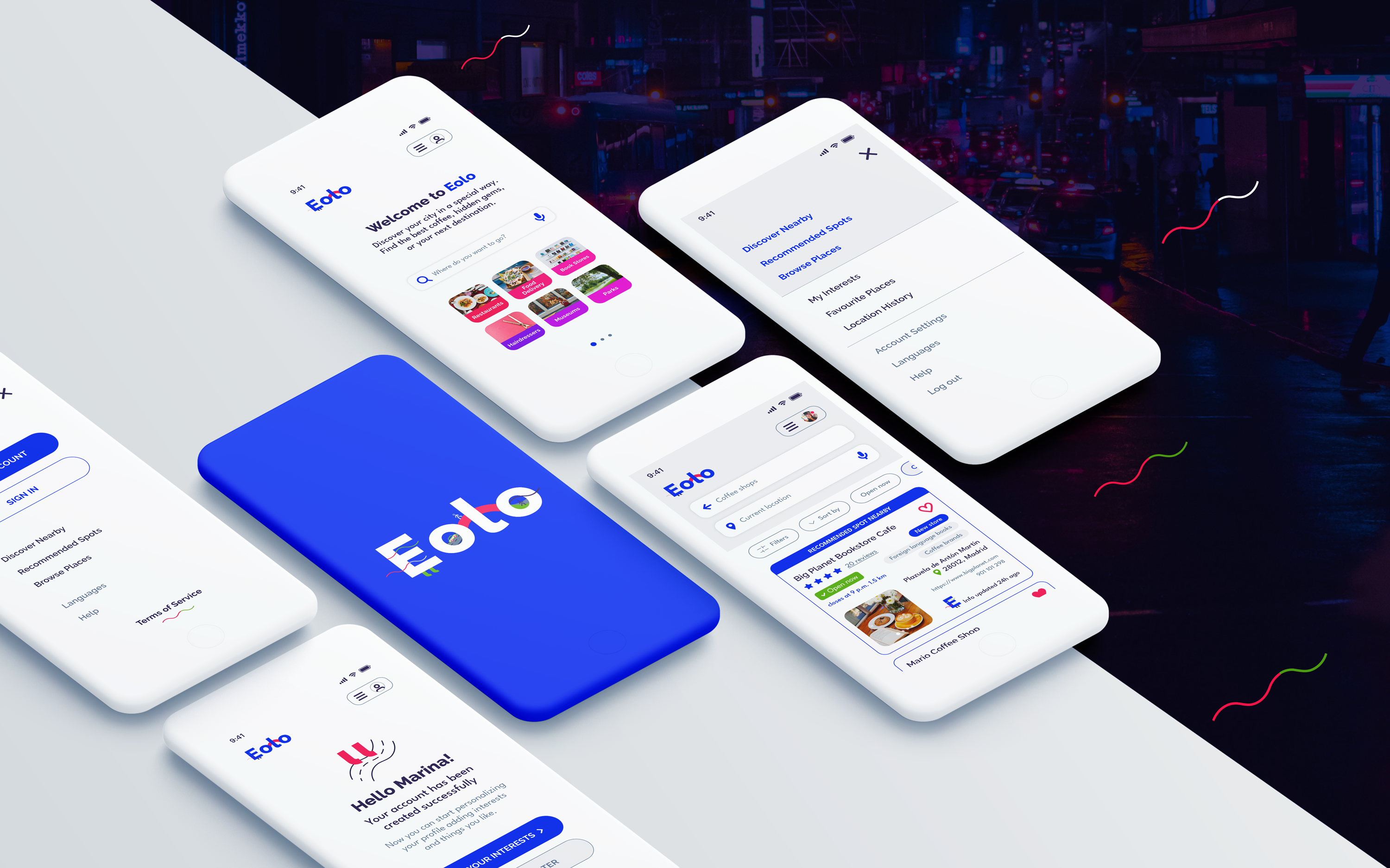 Eolo is a location based-recommendations app that helps users to find a specific place, service or shop. It provides alternative routes, tailored recommendations and notifications to let users better know the surroundings based on their interests and preferences.
