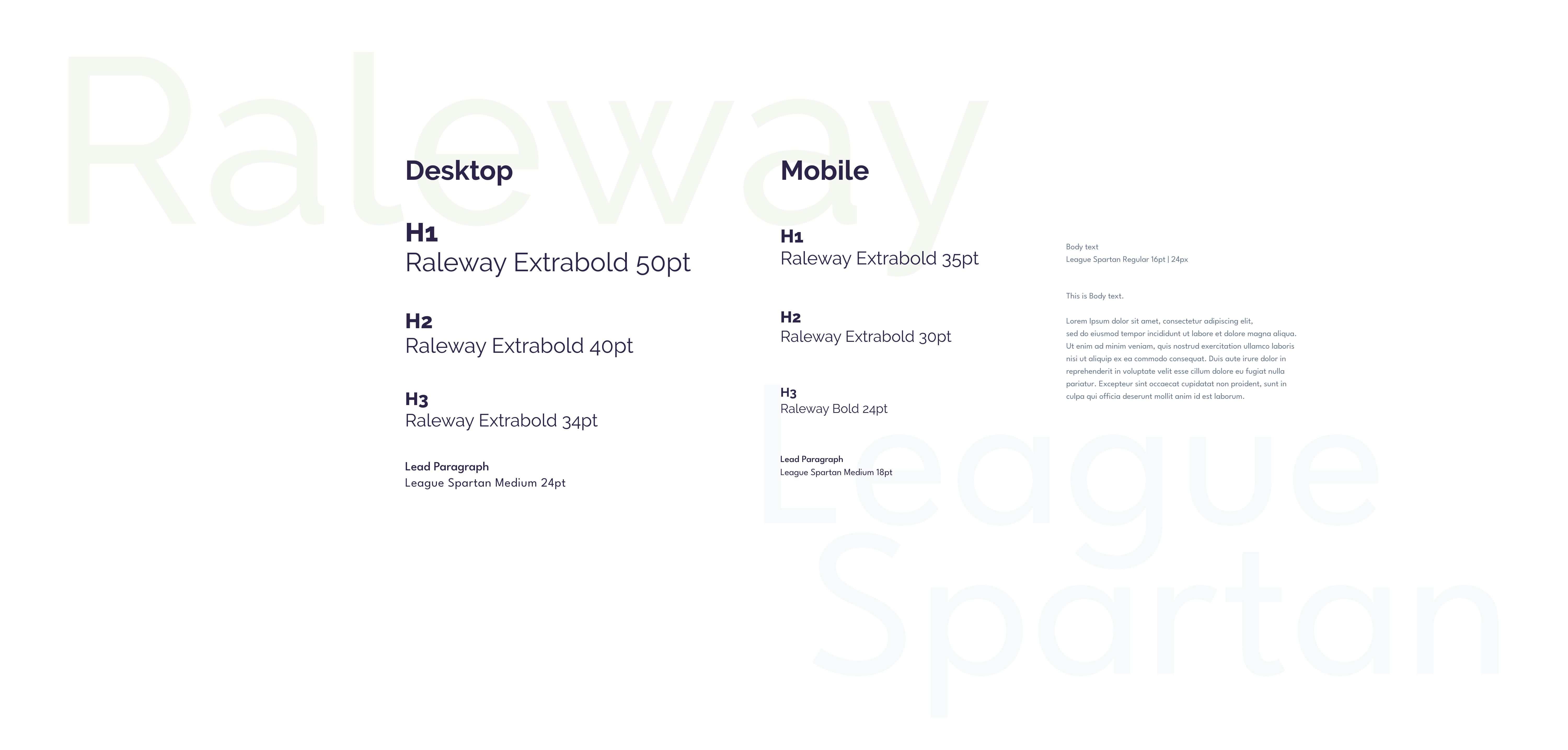 Raleway and League Spartan, two clean sans-serif Google fonts.